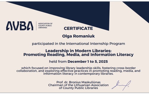 Учасники з України висловлюють велику подяку Каунаській повітовій публічній бібліотеці імені Вінцаса Кудірки, Каунаській міській публічній бібліотеці імені Мартинаса Мажвідаса, Вільнюській повітовій публічній бібліотеці імені Адама Міцкевича, Литовській аудіосенсорній бібліотеці, факультету комунікацій Вільнюського університету, Асоціації повітових публічних бібліотек та Асоціації муніципальних публічних бібліотек. Особлива вдячність пані Лаурі Сімкевіце, директорці Публічної бібліотеки Клайпедського повіту імені Єви Симонайте, Вікторії Жилінскайте – головному методисту цієї бібліотеки з проєктної діяльності та нашій співвітчизниці, яка наразі працює у бібліотеці Клайпеди Ларисі Сидоренко. Щиро вдячні пані Греті Кевелайтєне – директорці Публічної бібліотеки Паневежського повіту Габріеле Петкявічайте-Біте за організаційний супровід.