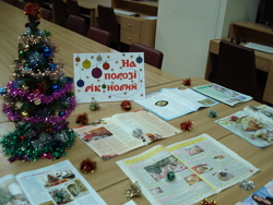 зібрані на святковій виставці «На порозі рік новий», яка відкрилася у читальній залі. А як організувати Новорічне свято вдома, допомогти в організації свят у школі та дитсадку, ознайомитись з традиціями святкування новорічних свят у різних країнах світу, технологією виготовлення святкових прикрас та дізнатися, як до нас прийшла новорічна ялинка можна, завітавши на виставку «Новорічна казка» у відділ абонемента.