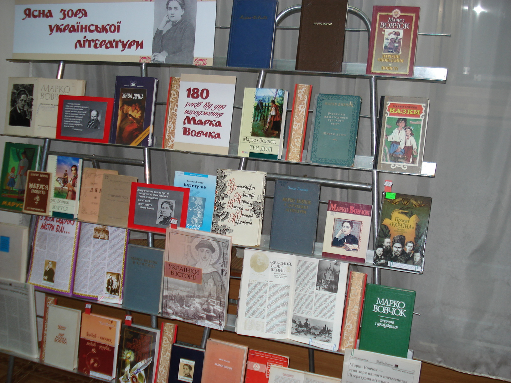 180-річчю від дня народження видатної української письменниці і перекладача Марка Вовчка присвячена виставка літератури, що відкрилася у читальній залі. Іван Франко так писав про її творчість: «Краще в її творіннях – це, без сумніву, її мова. При всій своїй простоті і популярності вона дуже багата лексично і незрівнянно мелодійна… З простою красою і ніжністю її мови і стилю нерозривно поєднується її ніжна любов до всіх нещасних і страждущих, а особливо до найбідніших серед бідних – до жінок…». «Своєю духовною спадкоємицею» і єдиним українським автором, здатним відобразити красу народної мови, назвав Марка Вовчка Тарас Шевченко.