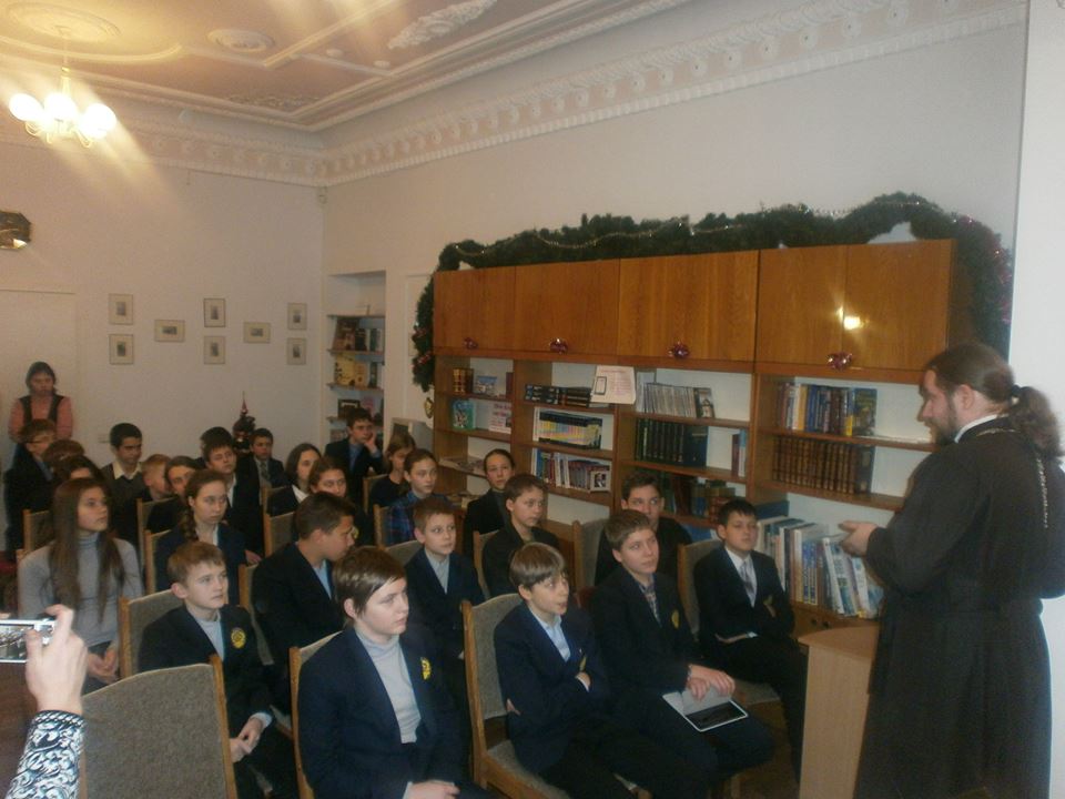 У відділі краєзнавчої літератури та бібліографії пройшов захід пізнавального характеру – зустріч семикласників ліцею № 38 ім. В. М. Молчанова з протоієреєм Свято-Воскресенського храму Отцем Владиславом, присвячена традиціям та звичаям Різдвяних свят у Києві. Завідувач відділу Надія Грищенко розповіла про бібліотеку та про специфіку роботи краєзнавчого відділу, його унікальні фонди і можливості та запросила учнів з батьками звертатись до відділу для розширення своїх знань про Київ, його історичне минуле і сьогодення. Священослужитель розповів про історію та традиції Різдвяних свят та Хрещення, Святий вечір, традицію сідати до столу лише після першої зірки на небосхилі, закінчення Різдвяного посту, святкування Різдва, Собору Пресвятої Богородиці,