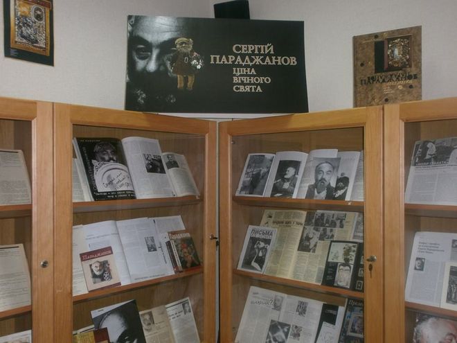 До ювілею видатного митця у відділі мистецтв розгорнуто велику книжково-ілюстративну виставку «Сергій Параджанов. Ціна вічного свята». Виставка знайомить з творчим доробком Сергія Параджанова: фільмами «Тіні забутих предків», «Колір гранату», «Легенда про Сурамську фортецю», «Ашик-Керіб», а також із нездійсненими задумами режисера. На виставці представлено книжкові видання, журнальні і газетні публікації, репродукції колажів художника.
