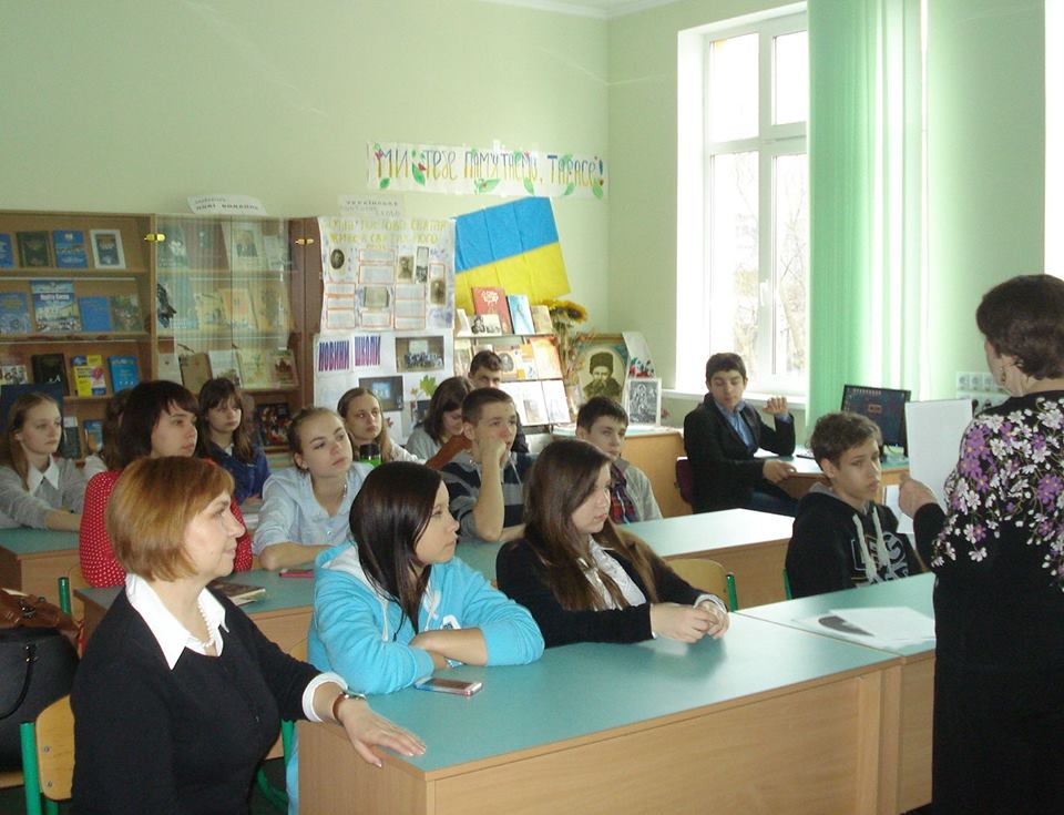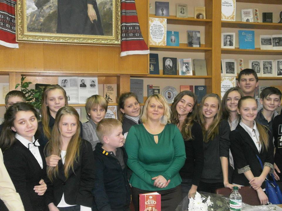 учням 9 класу про роль народної пісні і професійної музики у житті та творчості українського генія, проаналізувала взаємозв’язок поетичних творів великого Кобзаря з українською народною пісенною творчістю та зробила огляд музичної шевченкіани. Лекція супроводжувалась прослуховуванням уривків з музичних творів.