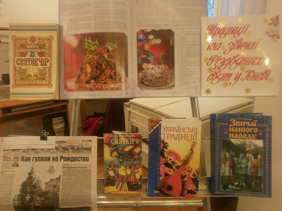про Хрещення Господнє та добрі традиції веселих колядок, вертепів. Зустріч пройшла цікаво, в інтерактивній формі. Відповідаючи на запитання вікторини про народні святкування Дня св. Миколая, Меланки, Василя, старого Нового року; про різдвяні забави: колядки, вертепи, щедрівки діти проявили неабияку обізнанність. Переможці та учасники вікторини були нагородженні солодощами. Присутні познайомились з книжковою виставкою «Традиції та звичаї Різдвяних свят у Києві».