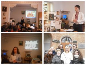 До відділу краєзнавчої літератури та бібліографії на урок краєзнавства «Мій рідний Київ: Свято-Покровський монастир» були запрошені студенти Київського професійно-педагогічного коледжу ім. А. Макаренка. Урок розпочався зі знайомства з відділом, його основними напрямками роботи. Основну увагу зав.відділу Грищенко Н.Б зосередила присутніх на інформаційній роботі відділу, про матеріали, що майже щодня розміщуються на сайті бібліотеки в розділі «Київська панорама» та блогах відділу: «Як тебе не любити, Києве мій», «Кияни від А до Я». Зустріч зі студентами продовжила екскурсовод, представник Ліги екскурсоводів Києва, постійний користувач відділу Пирогова Наталія, яка провела зі студентами екскурсію по Свято-Покровському монастирю. Пішою ходою до монастиря Наталя Пирогова цікаво познайомила слухачів з історією вулиці Артема та її будівлями, що мають історичну та архітектурну цінність. Майже дві години студенти знайомилися з собором, церквами, їх історією, внутрішнім оздобленням церковного комплексу.