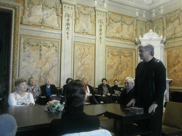 У відділі мистецтв відбулася презентація книги Олександра Балабка «Рай і пекло Коцюбинського». Ця книга є третьою в творчому доробку автора. Прекрасне подарункове видання майже із сотнею фотоілюстрацій, переважно кольорових, де вміщено три новели Коцюбинського про Італію — «Сон», «Хвала життю» і «На острові». Вони та листи з Капрі рідним, друзям, коханій і стали Олександрові Балабку путівником у подорожі слідами письменника на цьому острові, за «незримої участі Михайла Коцюбинського, ефект присутності якого відчує кожен, хто цю повість читатиме» (з предмови). Привітати письменника прийшли його колеги та друзі: письменники Михайло Сидоржевський, Теодозія Зарівна, Василь Фольварочний, Лариса Петрова, очільниця Спілки жінок Києва Галина Менжерес, заслужена артистка України Світлана Мирвода, інші. Завідувач відділу Л.С.Криворучко презентував виставку документів із фонду відділу, присвячену 150-річному ювілею Михайла Коцюбинського. Презентація супроводжувалась чудовими мелодійними піснями на слова О. Балабка. В доробку прозаїка, публіциста, пісняра – низка документальних повістей, присвячених видатним особистостям України. Серед інших – «Київ, Іринінська, Лифарям…». Повість за листами митця написана на основі неопублікованого і недослідженого архіву танцівника і балетмейстера Сержа Лифаря, колекція стародруків якого зберігається у фондах нашої бібліотеки. Також Олександр Балабко є автором документального фільму, присвяченого Сержу Лифарю. З приємністю повідомляємо,що його появі автор завдячує Київській муніципальній українській академії танцю ім. Сержа Лифаря та нашій бібліотеці. Тож другою частиною заходу був перегляд фільму та приємне спілкування у теплій та затишній атмосфері відділу.