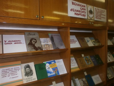 З нагоди 200-річчя Великого Кобзаря на абонементі відкрилась постійно діюча книжкова виставка «Великий син великого народу». «Він був сином мужика – і став володарем у царстві духу. Він був кріпаком – і став велетнем у царстві людської культури…», – так писав про Тараса Шевченка видатний український письменник Іван Франко. Матеріали виставки знайомлять з життям поета, його поглядами, характером, романтичними пригодами, коханням, любов’ю до своєї мови та народу і ненавистю до царського режиму.