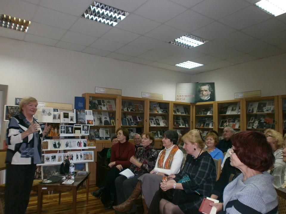 З нагоди 200-річчя від дня народження видатного італійського композитора Джузеппе Верді у відділі мистецтв відбувся музично-театральний вечір «Джузеппе Верді на українській оперній сцені». Доктор мистецтвознавства, професор Національної музичної академії ім. П. Чайковського, голова музичного товариства шанувальників Р. Вагнера Марина Романівна Черкашина розповіла присутнім про сучасні версії сценічного втілення опер Д. Верді майстрами світової режисури та презентувала свою нову книгу “Оперный театр в пространстве меняющегося мира: страницы оперной истории в картинках и лицах”. Присутні переглянули уривки з опери «Травіата» постановка – Віллі Деккера (Зальцбурзький оперний фестиваль 2005 р.). До ювілею Джузеппе Верді приурочена також книжково-ілюстративна виставка, де представлено літературу про музичну спадщину видатного італійського композитора.