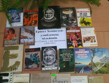 Відділ літератури іноземної мови запрошує ознайомитись з книжковою виставкою, організованою до 115-ої річниці з дня народження Ернеста Хемінгуея. До вашої уваги твори автора мовою оригіналу, матеріали про життя і творчість письменника та перегляд фільму “Старий і море” англійською мовою.