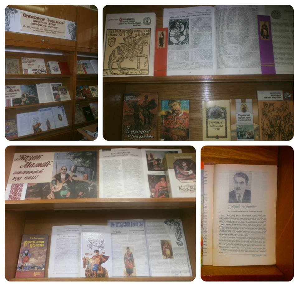До Дня українського козацтва на абонементі відкрито книжкову виставку «Знов про славу козацьку згадаєм». Змістовна та різноманітна література, яка підібрана до книжкової виставки, робить її дуже цікавою для користувачів. Запорізька Січ для українця – це возвеличуюче духовне явище національної самосвідомості, хвилююча сторінка історичного буття. Серед моря безмірних страждань, несправедливостей походи та перемоги запорожців утверджували український народ. Звідси почуття любові й захоплення козацтвом, що збереглися в народній душі.
