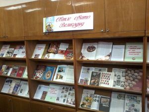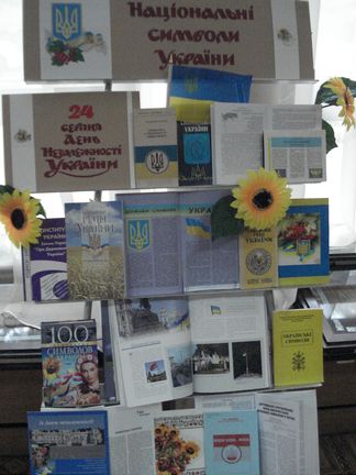 До Дня Незалежності України в читальній залі відкрито виставку літератури «Національні символи України», яка розповідає про історію державної і національної української символіки, втілення у ній історичної, політичної, національної і культурної самобутності народу, а також про її значення у контексті української ментальності.