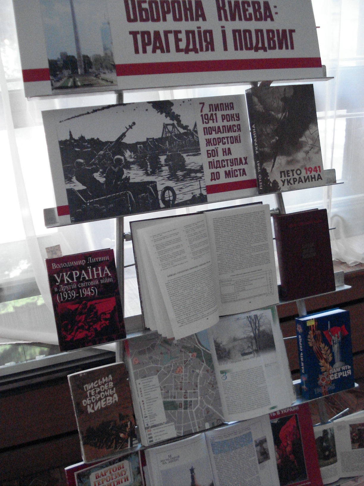 73 роки тому, 7 липня 1941 року, почалися жорстокі бої з фашистами на підступах до Києва. Сімдесят один день – з 11 липня до 19 вересня 1941-го – тривала Київська стратегічна оборонна операція. Книги, представлені на виставці в читальній залі, розповідають про героїчні і трагічні події тих днів. Вони містять документи, роздуми істориків, спогади очевидців, багатий фотографічний матеріал.