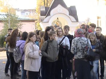 Працівники відділу краєзнавчої літератури та бібліографії організували екскурсію для користувачів бібліотеки – студентів 1 курсу Київського професійно-педагогічного коледжу ім. А. Макаренка. Надзвичайно неординарний екскурсовод Ліги екскурсоводів м. Києва Наталія Пирогова запропонувала студентам разом здійснити подорож по території Свято-Покровського жіночого монастиря. Вона відкрила майбутнім учителям цікаві сторінки історії виникнення монастиря, ознайомила з росписом собору святого Миколи Мирлікійського, Покровського храму, розповіла маловідомі факти з життя засновниці цього чудового комплексу. Студенти подякували пані Наталії за цікаву розповідь, глибокі знання історії Києва, атмосферу любові і пошани до його святинь.