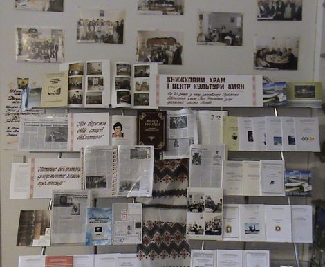 У відділі краєзнавчої літератури та бібліографії розгорнута книжково-ілюстративна виставка : «КНИЖКОВИЙ ХРАМ І ЦЕНТР КУЛЬТУРИ», присвячена 70-річчю з часу заснування Публічної бібліотеки імені Лесі Українки для дорослих м. Києва та Всеукраїнському Дню бібліотек. В розділі « Літопис бібліотеки» користувачі мають змогу ознайомитись з документами і матеріалами, що відтворюють віхи 70-річної історії бібліотеки, впродовж яких вона виконує свою просвітницьку місію серед киян. На виставці представлені науково-методичні видання на допомогу публічним бібліотекам міста, картотека, в якій відображені численні публікації про нашу бібліотеку в пресі та видання відділу. Творчу атмосферу, що панує у відділі під час проведення краєзнавчих читань, презентацій книг, поетичних слемів, уроків народознавства, зустрічей з відомими києвознавцями, вченими, істориками, екскурсоводами ілюструють представлені на виставці численні світлини.