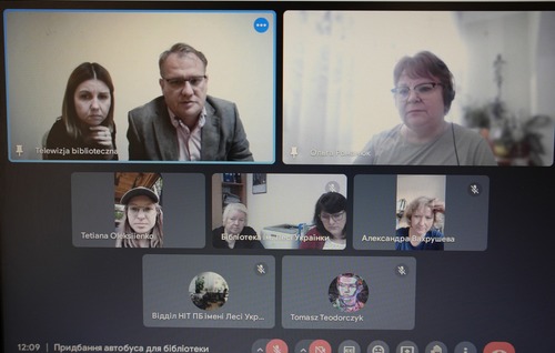 9 жовтня наша бібліотечна ідея отримати для реалізації наших чисельних проєктів бібліобус з’єднала директорку бібліотеки Ольгу Романюк, її заступниць та завідувачку відділу нових інформаційних технологій з польським містом Гостинь, з його публічною бібліотекою, до якої ми звернулися за порадою стосовно організації бібліобусу. Консультація відбулася у формі відеоконференції між Публічною бібліотекою міста та муніципалітету в Гостині та нашою бібліотекою.