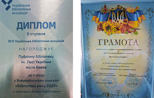 Під час конференції відбулася церемонія вручення нагород і відзнак ВГО “Українська бібліотечна асоціація”. Серед нагороджених – колектив Публічної бібліотеки імені Лесі Українки, який визнано одним із переможців конкурсу «Бібліотека року 2023» та нагороджено Дипломом 2 ступеня.