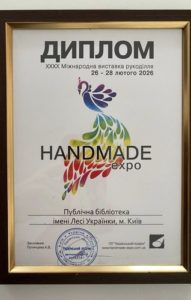 Наша бібліотека 26 лютого взяла участь у ХХХХ Міжнародній виставці рукоділля «Handmade-Expo» та була відзначена почесним дипломом за активну участь у популяризації традиційної культури.
