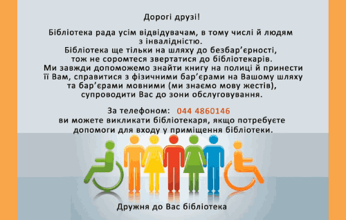 Представники бібліотеки взяли участь у навчальному тренінгу з питань безбар’єрності, який відбувся в конференц залі приміщення Київської міської державної адміністрації 21 червня. Експерт-консультант «Ліги сильних» Володимир Висоцький розповів про основи етики комунікації та коректну термінологію у спілкуванні з людьми, пояснив та навів приклади, яким чином культурні послуги можуть стати доступними для всіх громадян, а також, які напрямки безбар’єрності виокремлює законодавство.