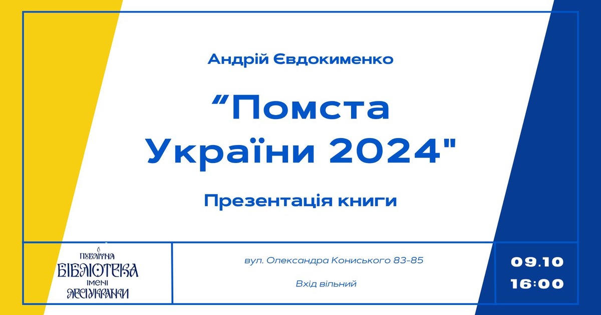 9 жовтня о 16:00 у Публічній бібліотеці імені Лесі Українки відбудеться презентація книги Андрія Євдокименка “Помста України 2024”.
