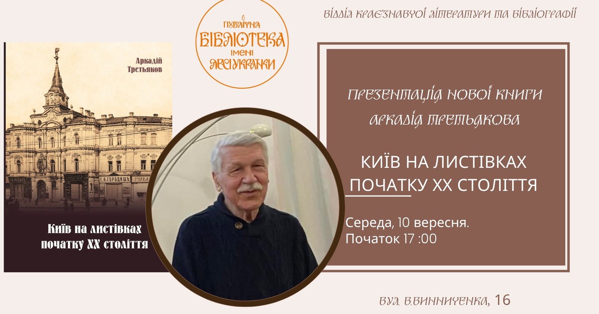 Запрошуємо на презентацію нової книги києвознавця Аркадія Третьякова “Київ на листівках початку ХХ століття”. Рідкісні листівки занурють в історію, а рідне місто надихає крізь століття.