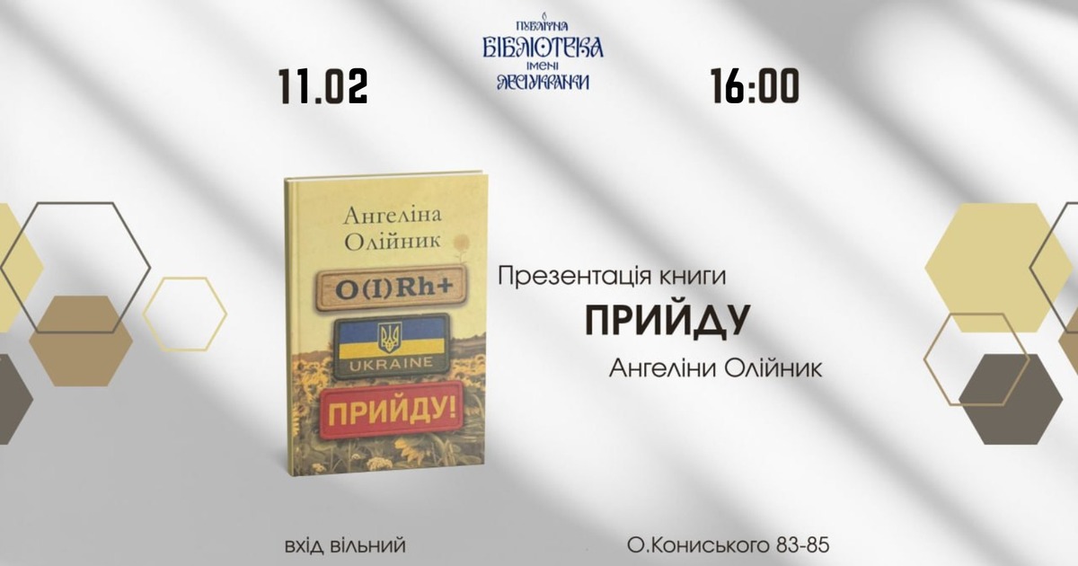 11 лютого о 16:00 у Публічній бібліотеці імені Лесі Українки відбудеться презентація книги «Прийду» Ангеліни Олійник.