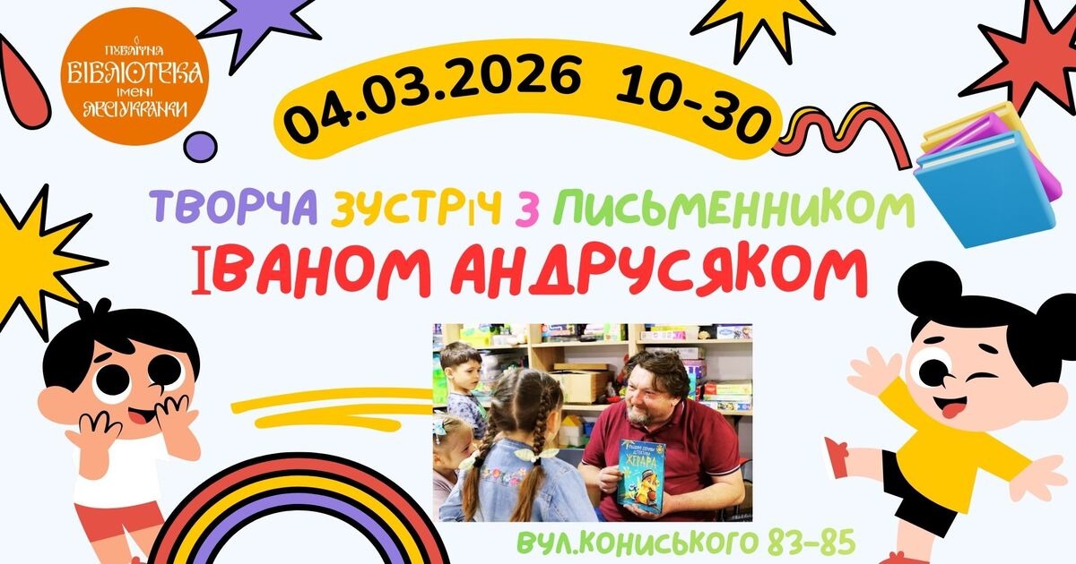 Залучаємо дітей до читання! 4 березня 2026 року о 10:30 у читальній залі відбудеться особлива творча зустріч для дошкільнят, яка розкриє малечі радість відкриття світу книжок! До нас завітає відомий український письменник, поет і казкар – Іван Андрусяк.