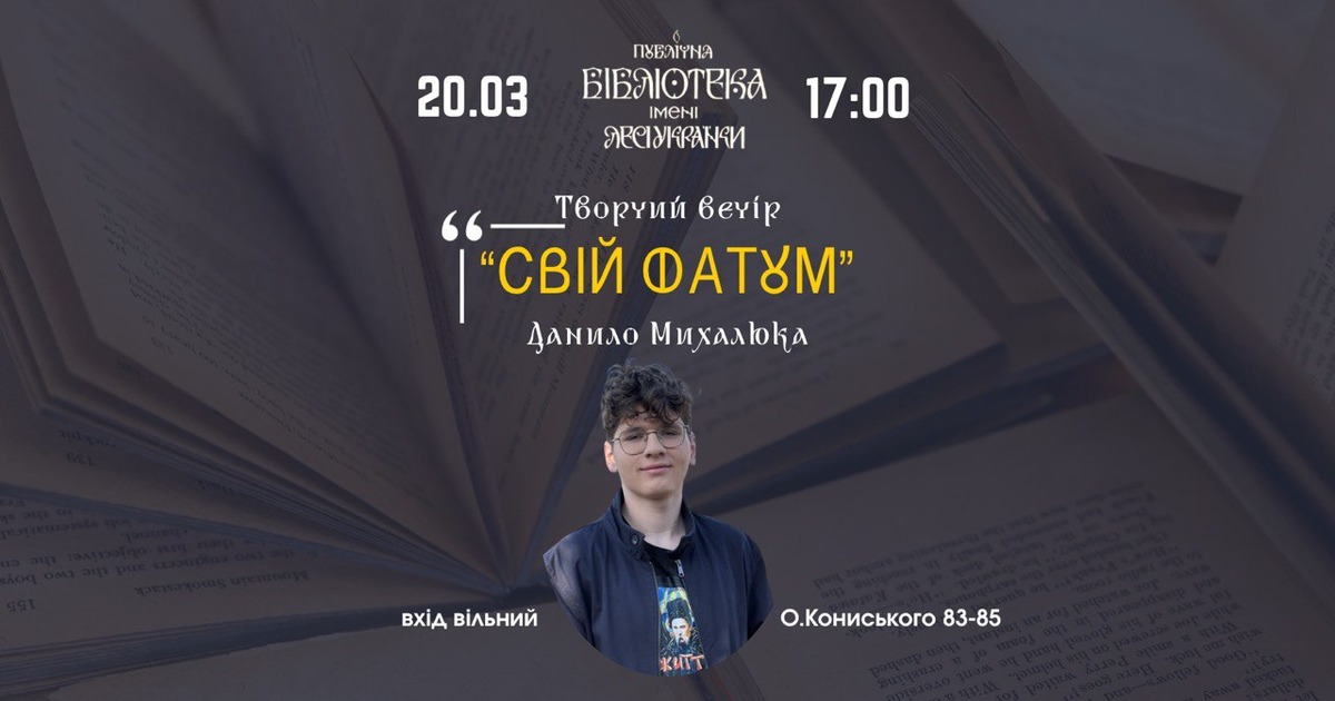 Запрошуємо Вас на творчий вечір Данила Михалюка «Свій фатум».