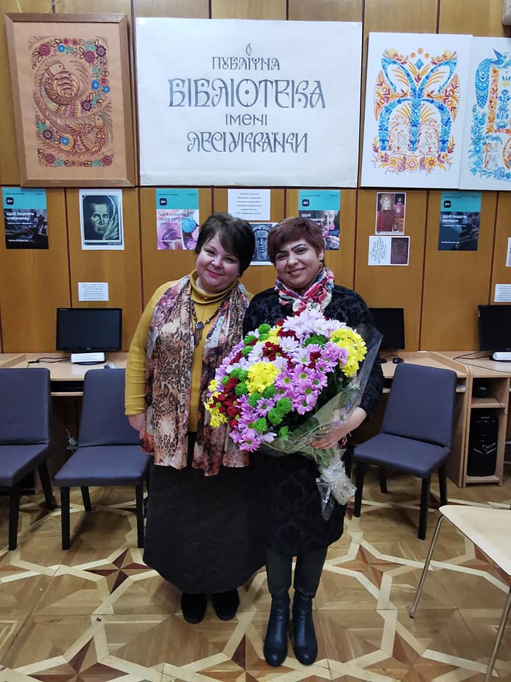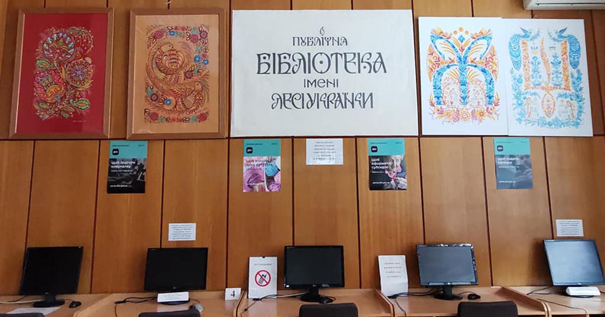 Виставка робіт художників каліграфів – славетного графіка, Василя Яковича Чебаника та майстрині петриківського розпису Марини Саркісян з 9 лютого експонується у залі медіаресурсів бібліотеки.