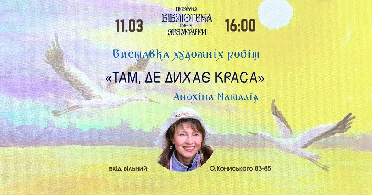 11 березня о 16:00 у стінах Публічної бібліотеки імені Лесі Українки відбудеться відкриття виставки художниці, педагога та арт-терапевтки Наталії Анохіної.