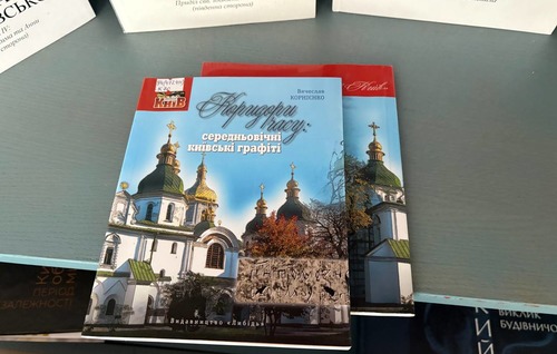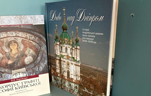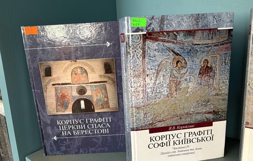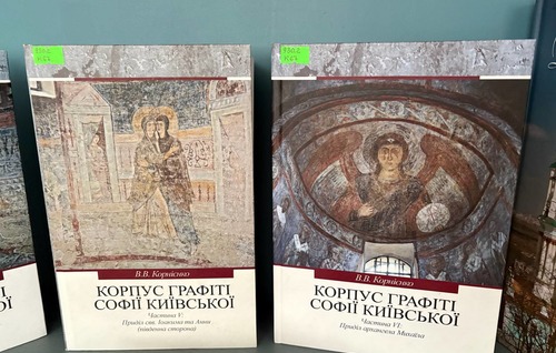 Серед експонованих видань — «Диво над Дніпром», що висвітлює сучасну реставрацію Андріївської церкви, а також праці Вячеслава Корнієнка: «Коридори часу: середньовічні київські графіті», багатотомний «Корпус графіті Софії Київської (XI — початок XVIII ст.)» (частини IV, V і VI), у яких досліджено унікальні написи, що зберегли голоси минулих століть.