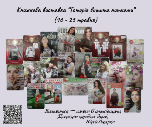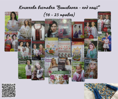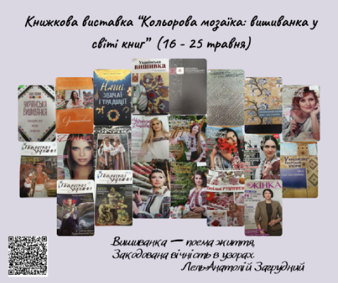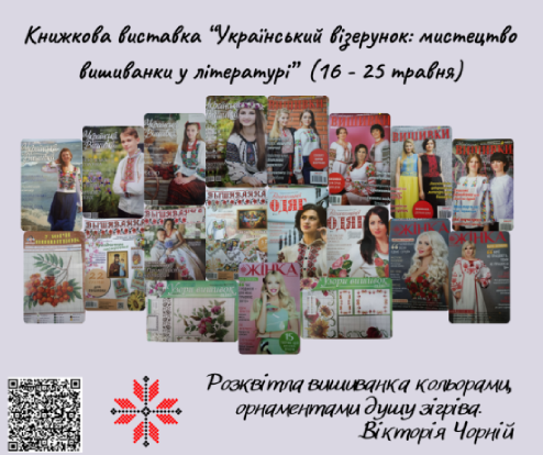 А щоб дізнатися більше про традиції та символи вишиванки відділ нестаціонарного обслуговування на замовлення наших користувачів з Київський професійний коледж будівництва і архітектури, Київський професійний коледж “Синергія”, Київський державний фаховий хореографічний коледж, Київський професійний коледж будівництва і комунального господарства та КППФК імені Антона Макаренка підготував книжкові виставки «Кольорова мозаїка: вишиванка у світі книг», «Український візерунок: мистецтво вишиванки у літературі», «Історія вишита нитками», «Традиційна вишиванка – дотик до української культури» та “Вишиванка – код нації».