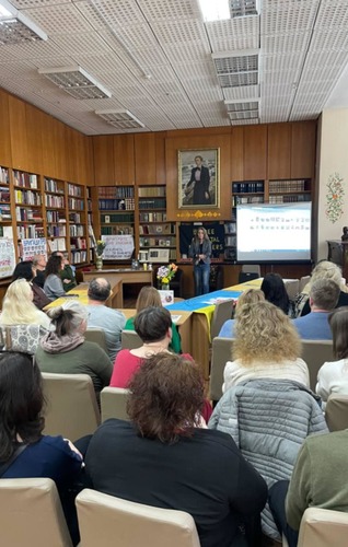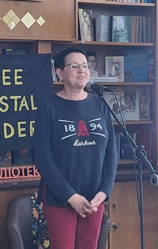 12 квітня читальна зала і «Літературно-музична вітальня Helen Kalm» провели авторську презентацію збірки «Лірика маріупольських бомбосховищ» поетеси Оксани Стоміної.