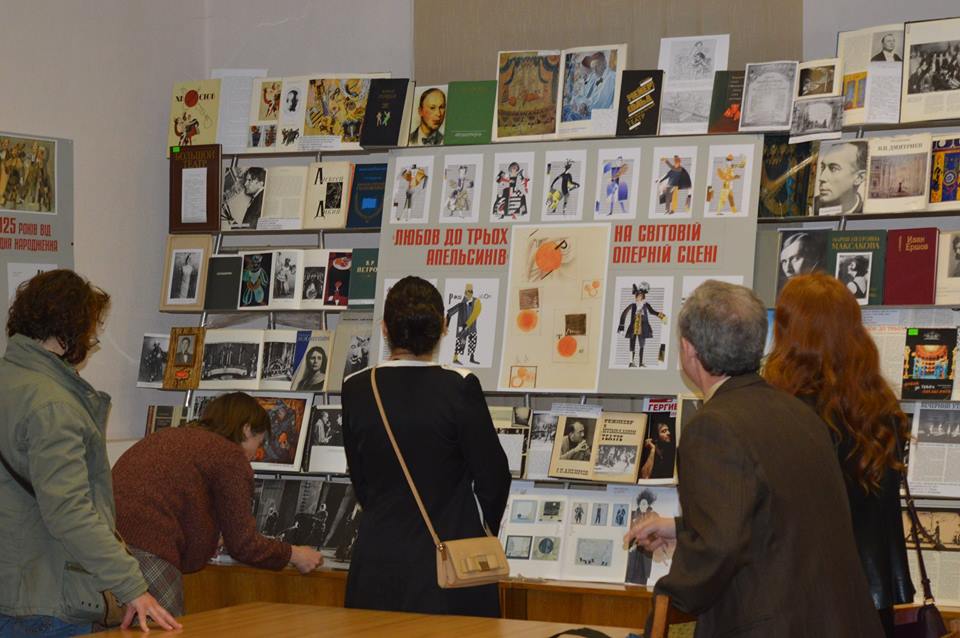 28-04-2016 До 125-річчя від дня народження Сергія Прокоф’єва у відділі мистецтв відкрито книжково-ілюстративну експозицію “Любов до трьох апельсинів” на світовій оперній сцені”. Виставка знайомить з історією створення і сценічного втілення опери, починаючи від її прем’єри на сцені Чикагського оперного театру 1921 року.