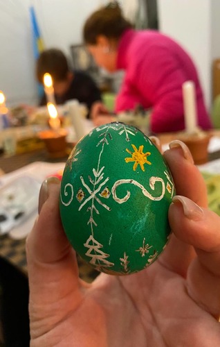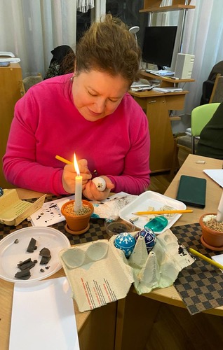 Розписуючи, жінки співали народних пісень, а в думках було головне: вдячність ЗСУ за можливість жити й творити, потужна віра в те, що Україна вистоїть та розквітне в радості вже зовсім скоро. Бережімо українські традиції та навчаймося нового, не відкладаючи на потім!