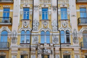 Старовинна кам’яниця на Шота Руставелі, 9 — не просто самобутній зразок київського модерну, а справжня загадка. Адже його фасад прикрашений таємничими масками, портретом Медузи Горгони, переплетеними рибами та міфологічними символами, які зберігають свою історію.