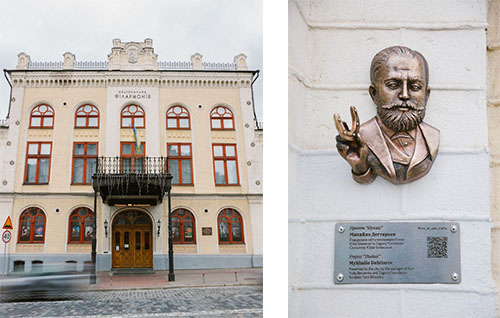 У 1882 році за кошти М.Дегтярьова побудували Будинок купецьких зборів, який нині є Колонною залою імені Миколи Лисенка. На фасаді філармонії й розміщена скульптурка Михайла Дегтярьова. У руці меценат тримає підкову, адже його бізнес був пов’язаний із виробництвом залізо-скоб’яних виробів.