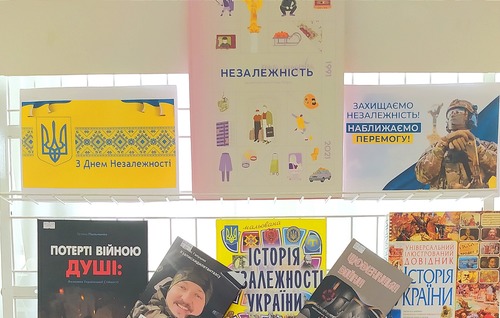 Читальна зала бібліотеки запрошує всіх бажаючих ознайомитись із книжковою виставкою «Незалежність. Третій рік війни».