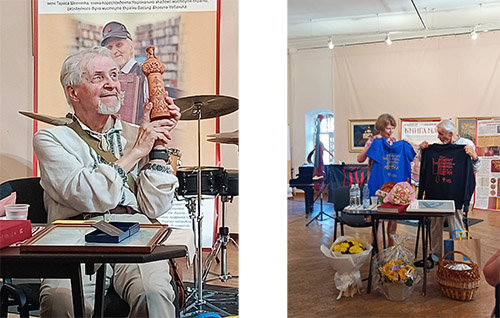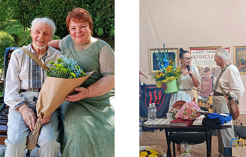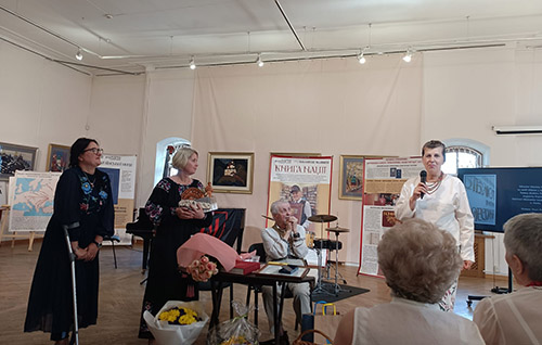 Директор бібліотеки Ольга Романюк привітала ювіляра від колективу бібліотеки та подарувала створений на основі архівних фотографій вітальний фільм «Від буковинського хлопчика – до Патріарха українського мистецтва».