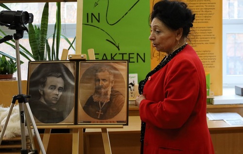 Презентацію дереворитів у бібліотеці вела Світлана Гладка, дружина майстра. Її витончена і жива манера розповіді та глибокі знання про творчість чоловіка створили атмосферу щирої захопленості та інтересу до мистецтва гравюри.