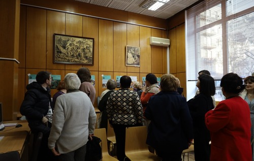 Після презентації гості мали змогу оглянути виставлені роботи. Учасники заходу ділилися своїми враженнями. Пані Світлана передала в дарунок бібліотеці до ювілею портрет Лесі Українки виконаний Ярославом Гладким. Дякуємо!