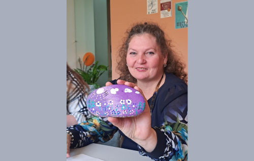 Під час чергової психологічної ресурсної зустрічі учасники занурились в арттерапевтичний процес. Послухали мудру притчу про камінь, кожен вибрав свій камінець та представив себе з допомогою нього.