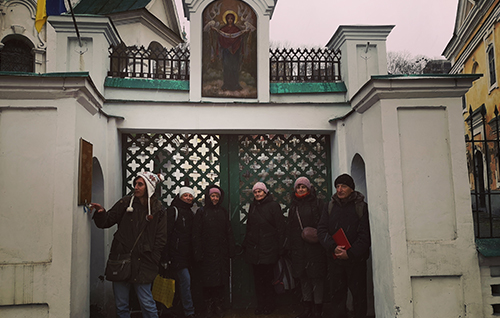 Також маршрут пролягав через новорічну локацію – ялинку на Софійській площі. Ми спустилися по сходах Володимирської гірки, побачили вид на Поділ, який відкривається біля Кокорівської альтанки. Поглянули на київський фунікулер з незвичайної сторони – збоку, у кінці вулиці Боричів тік. Навіть релігійного аспекту Різдва не оминули – завітали до святково вбраної Покровської церкви.