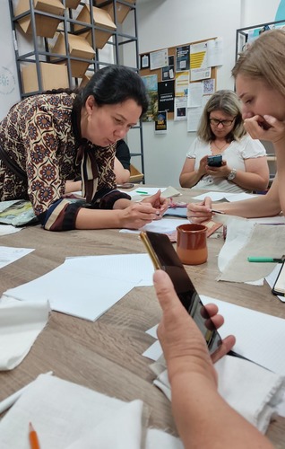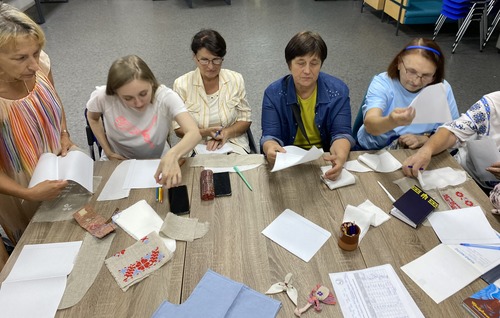 Разом із Танею Срібною, ведучою жіночих кіл психосоціальної підтримки, говорили, що є нашими психоемоційними опорами у всі часи: родина, рідна земля, традиції та цінності, які передаються з покоління в покоління. Розмірковували над символікою українських орнаментів, які прикрашали кераміку, сорочки, рушники, прикраси та навіть стіни храмів і палаців. Малювали, рахували елементи та пробували вишивати найвідоміші орнаменти, щоб згодом перенести їх на полотно. Торкнулися справжнього полотна, відчули його фактуру та дізналися, чим воно відрізняється від інших тканин. Завершили зустріч динамічною медитацією та витягнули метафорично-асоціативні карти, щоб кожна учасниця забрала з собою маленьке натхнення та внутрішню підказку – красиві поетичні рядки та гарний український образ.
