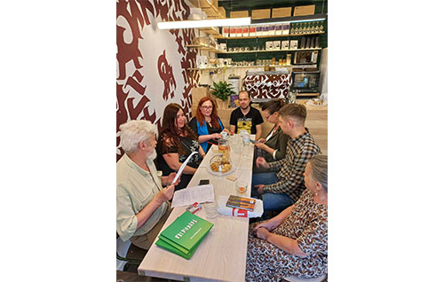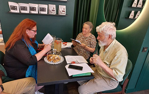 Від початку літа бібліотека оголосила про співпрацю з кав’ярнею «Орнамент», яка знаходиться поруч з бібліотекою. Що це дає користувачам бібліотеки? У цій чудовій атмосферній кав’ярні не лише готують смачну каву, а й люб’язно запрошують нас приходити з читачами та проводити камерні літературні зустрічі з авторами у затишній залі. Переконайтесь у цьому: 18 червня літературний клуб “КЛІК” зібрав поціновувачів поезії.