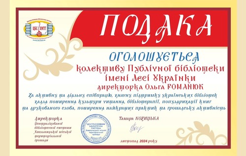 Бібліотека асоціюється з людьми, енергетика яких наповнює життям та творчістю будь-який простір. Щиро вітаю колег, які працюють і працювали у Публічній бібліотеці імені Лесі Українки м. Києва, яка святкує своє 80-річчя.