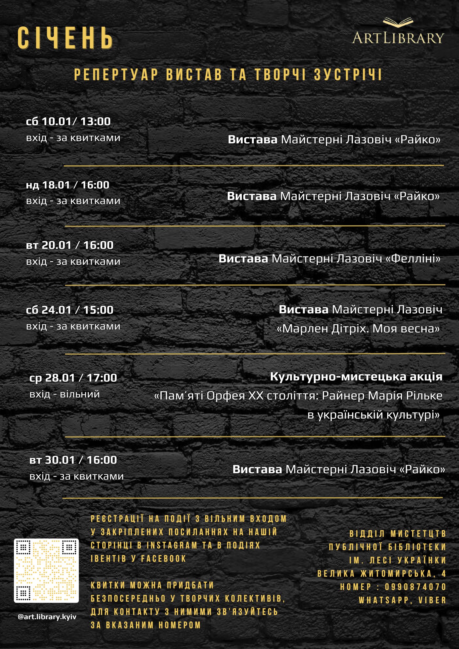 До вистав бібліотекою готуються виставки літератури під загальною назвою «Прочитай виставу», з якою кожен глядач може ознайомитися перед початком вистави.