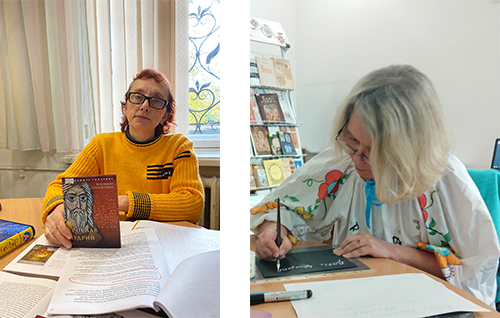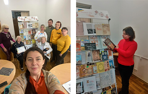 На книжково-ілюстративній виставці, що представлена у відділі, відвідувачі заходу побачили писемні графіті Софії Київської в роботах В’ячеслава Корнієнка, кольорові ілюстрації давніх рукописних видань у книзі Якима Запаска, переклади літературних пам’яток часів Київської Русі… Цікаво було дізнатися про основні центри літописання, розвиток друкарства, особливості давніх шрифтів.