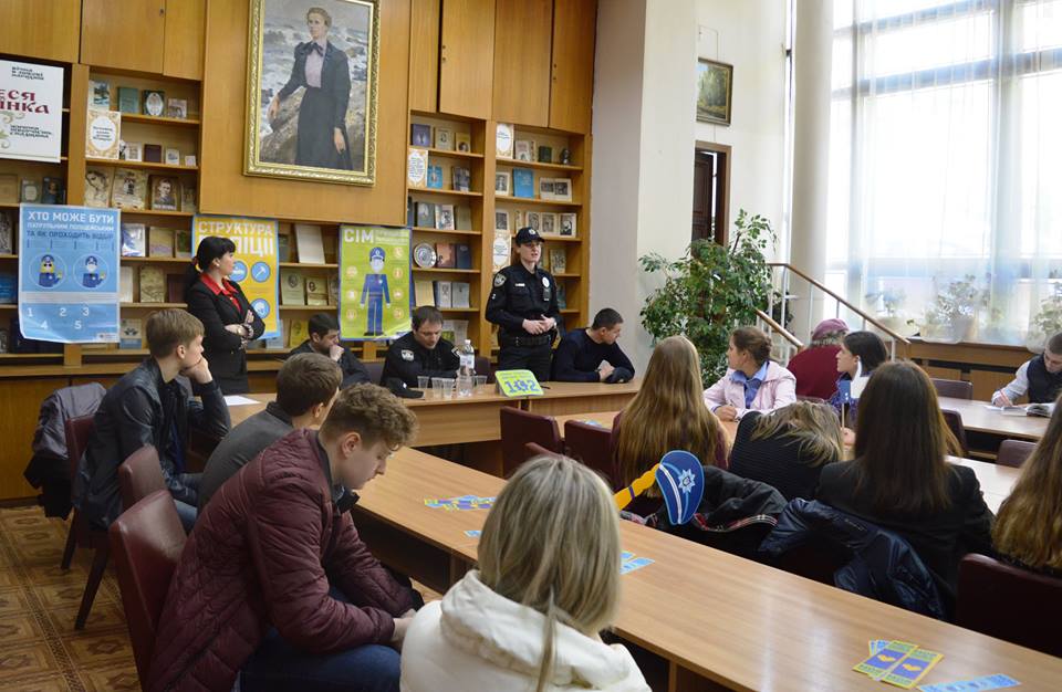 Учасники заходу переглянули тематичний фільм-експеримент «Піду в поліцію». Після перегляду відбулося живе спілкування учнів з представниками нової поліції, під час якого поліцейські відповідали на запитання підлітків щодо особливостей проходження їх робочих буднів, серйозні та курйозні випадки з їх практики, вимоги до рівня знань та фізичної підготовки, що потрібні для виконання професійних обов’язків.