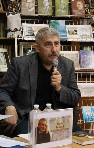 Захід розпочався з хвилини мовчання – вшанування пам’яті загиблих воїнів-захисників та Василя Фольварочного. Бібліотека підготувала та представила аудиторії відеопрезентацію, присвячену пам’яті письменника. Спогадами про драматурга поділилися його родина, друзі та колеги: