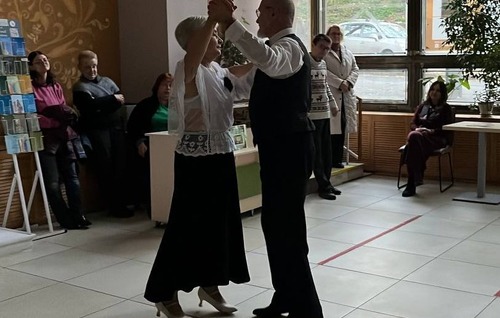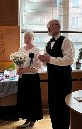Під час заходу пані Надія та пан Юрій розповідали про те, як познайомилися, створювали різноманітні роботи і як вивозили їх із Донецької області. Друзі та колеги прийшли привітати пару із відкриттям виставки та були запрошені до слова. Подружжя веде активний спосіб життя та продемонстрували глядачам декілька танців у фоє бібліотеки.