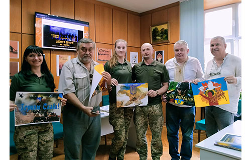 8 серпня бібліотека у партнерстві з Музеєм плакату при журналі “Музеї України” провела презентацію виставки “Плакати Великої війни” художників Олени Завітайло (Іспанія) та учасника АТО, арт-директора Музею плакату Юрія Неросліка (Харків, 92 бригада). На відкритті виставки були присутні представники Окремої президентської бригади імені гетьмана Богдана Хмельницького, яка бере участь у бойових діях на Донбасі. Бійці розповідали про свої військові будні, щемливі спогади про день, коли почалася війна…